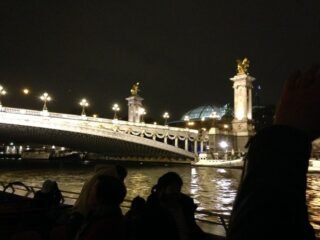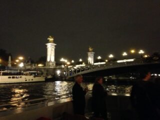 We had dinner at the bistro in the hotel and headed out for a Seine River cruise . The cruise took us past a lot of the famous buildings of Paris, the Louvre, Notre Dame, and under the bridge with the padlocks.