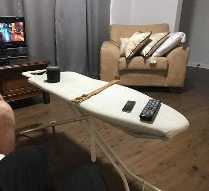 Our home for the night is âMagnolia on Oakâ The home is a well renovated home and we had a comfortable night, but as an AirBnB there were not the inclusions we normally have. To be fair though we got exactly what is outlined in the AirBnB listing. Extra bedrooms, the laundry, the garage and the back door to the yard were all locked off. There was a small fridge with nothing in it except 2 small tetra packs of milk. One thing that was missing was a coffee table to put our drinks on, so I used a âhotel hackâ I had recently seen online. Use the ironing board ? It worked perfectly.