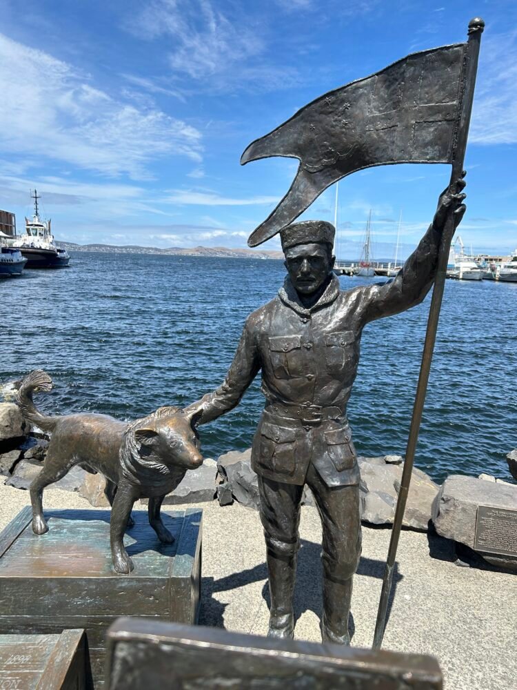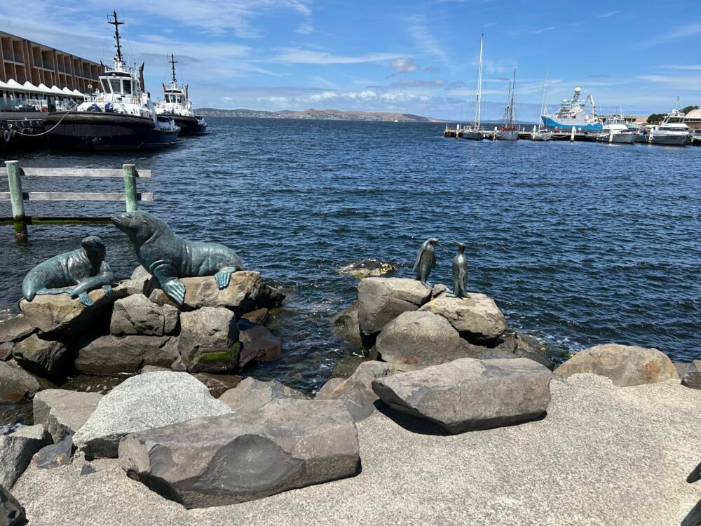 There are lovely sculptures on the waterfront of seals, penguins, and the men who worked at the Antarctica base with their dogs.