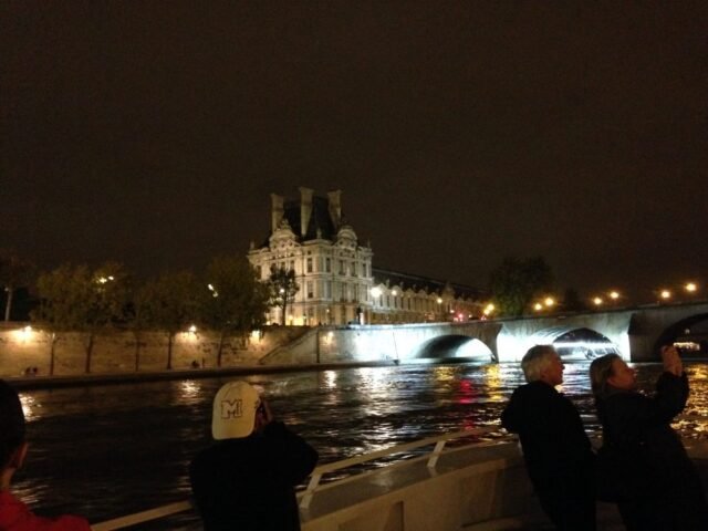 We had dinner at the bistro in the hotel and headed out for a Seine River cruise . The cruise took us past a lot of the famous buildings of Paris, the Louvre, Notre Dame, and under the bridge with the padlocks.
