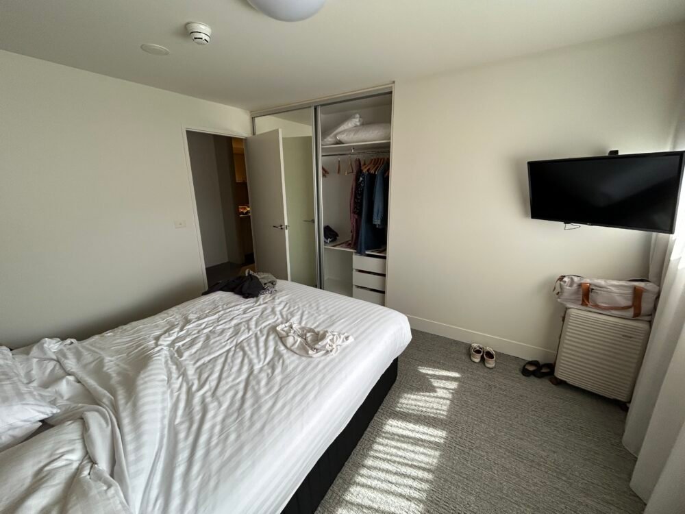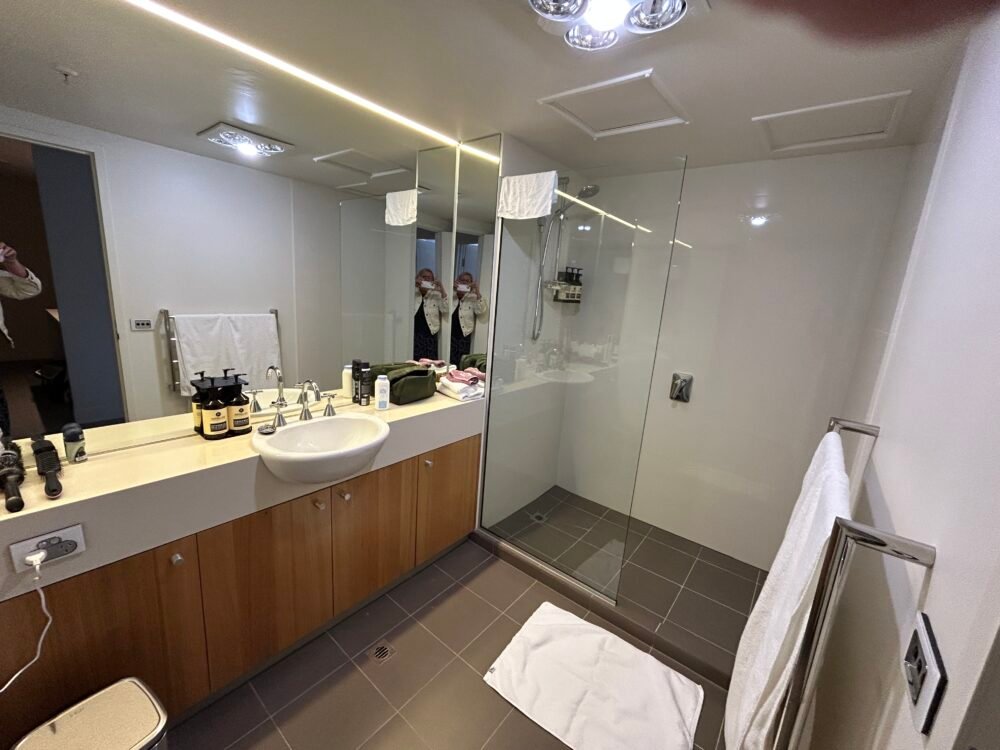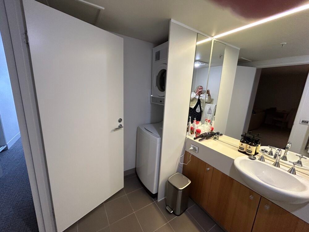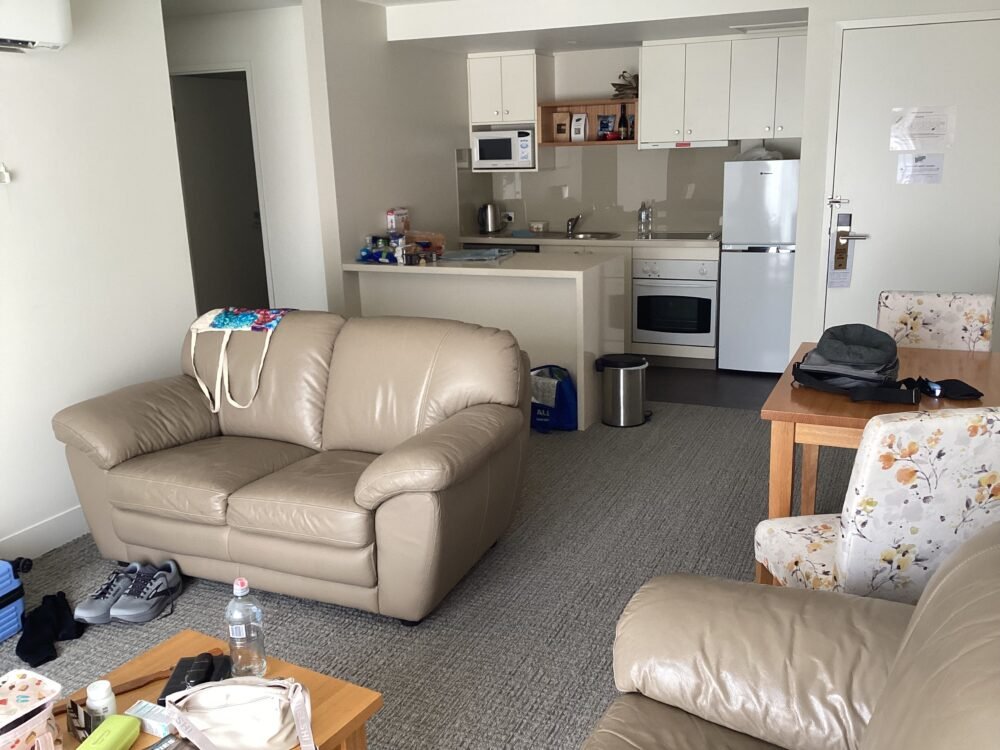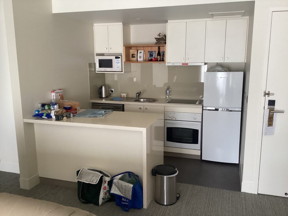 We made our way upstairs to our one bedroom apartment where we will be staying for the next week. The apartment is lovely, quite large with a full kitchen lovely big bathroom and the laundry in the bathroom .