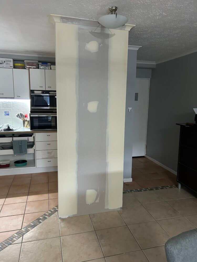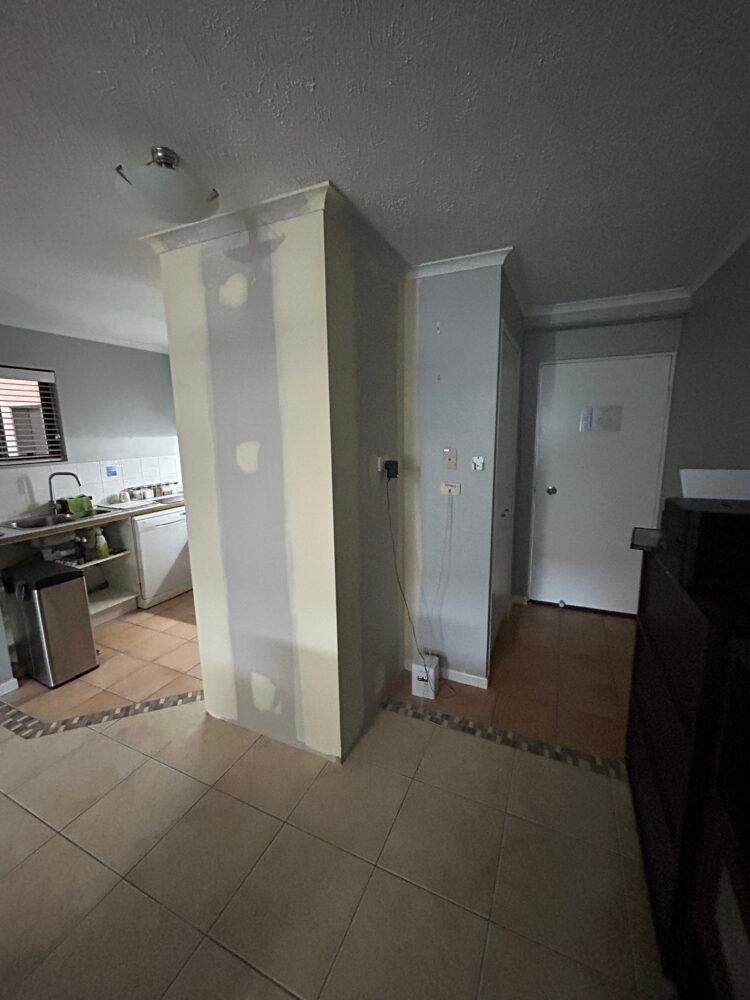 This week we have had the plasterer in to finish setting the wall that we had built earlier and also we have emptied out most of the floor cupboards in preparation for demo day at the end of the month .