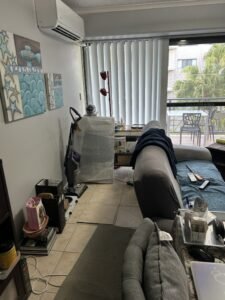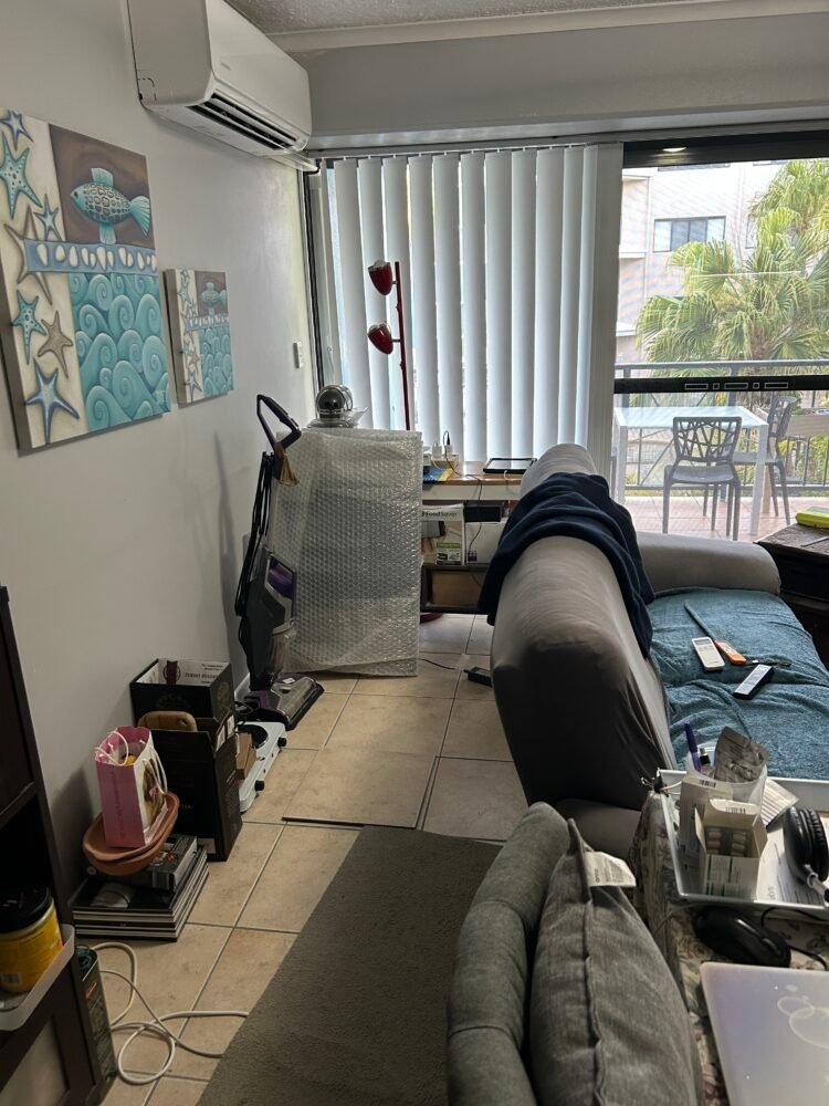 Luckily, we have a fairly large lounge room and we have moved the couch forward so we can store things up against the wall.