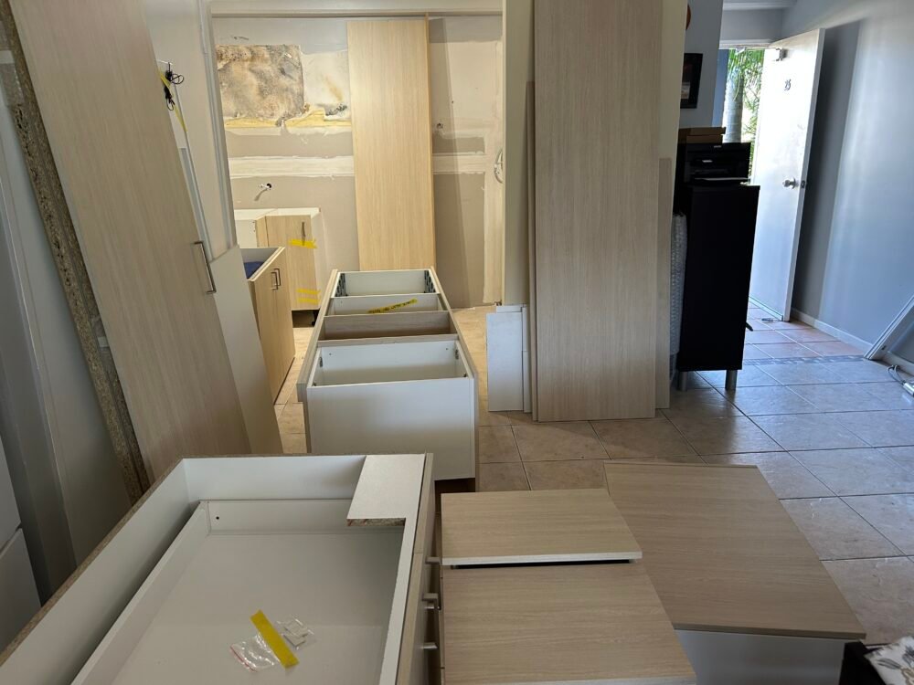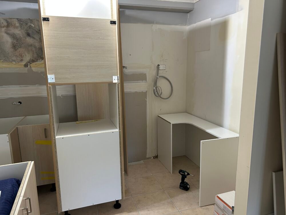Bit by bit throughout the day Mitchell and his helper put together the kitchen like a giant jigsaw puzzle. It all went together with absolutely no problems and he finished just before 2 o’clock.