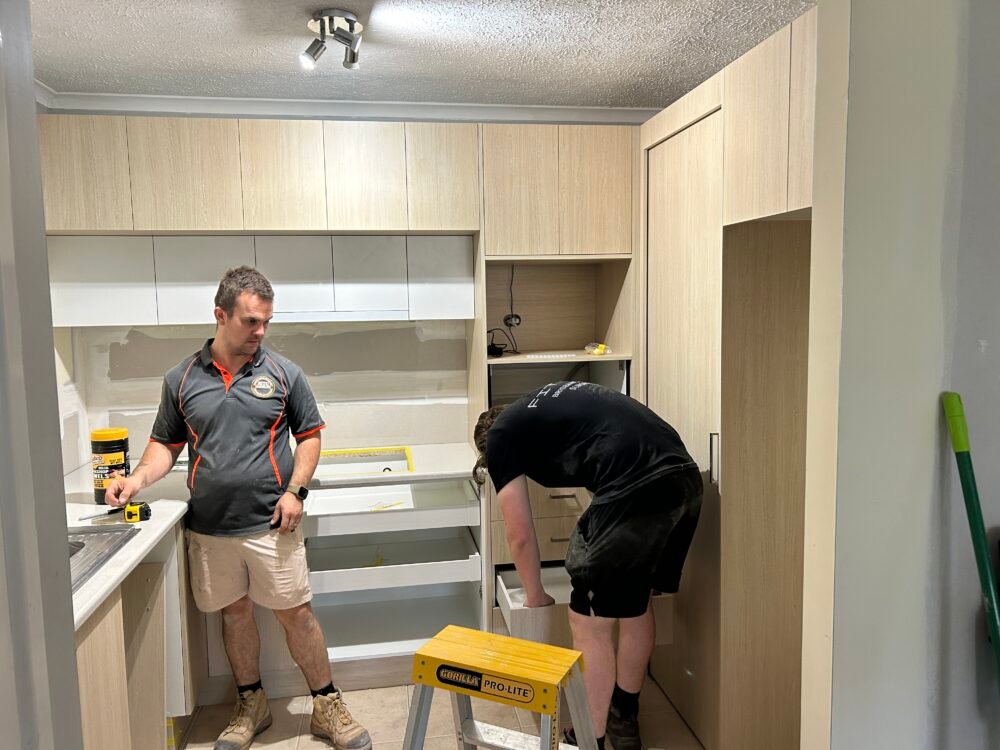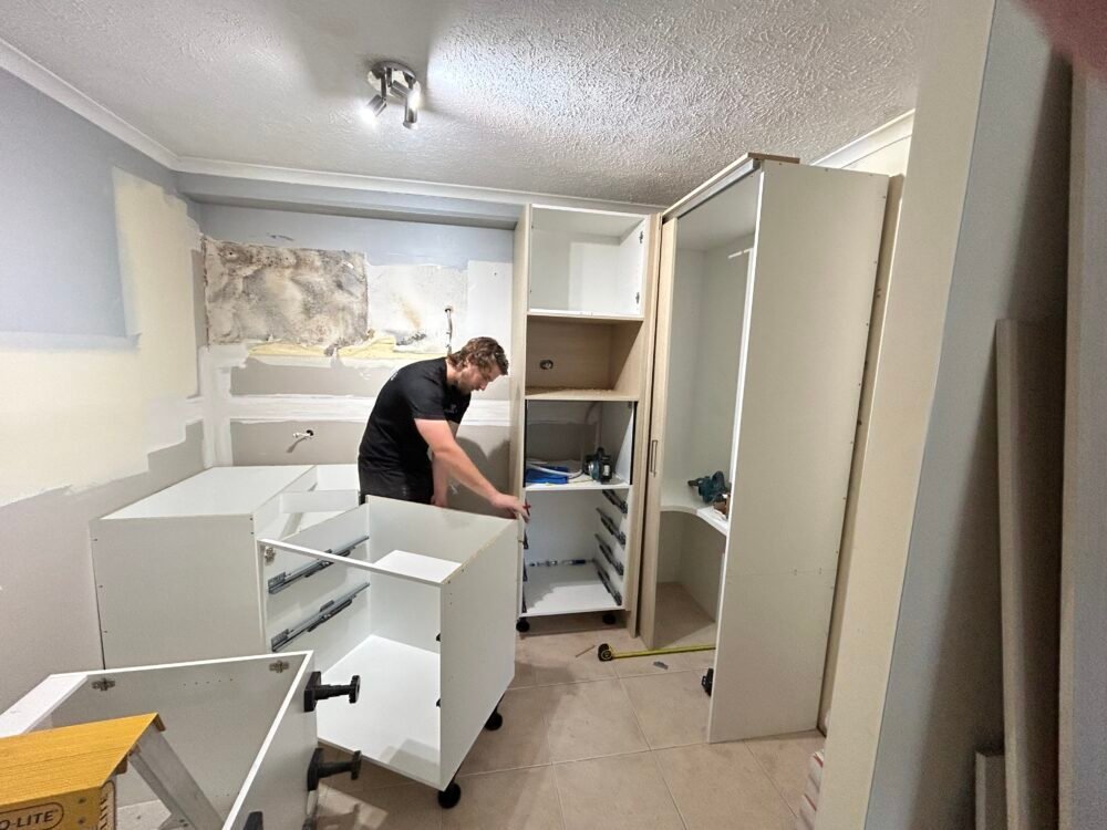 It took Mitchell and his offsider nearly an hour just to bring all the cupboards and tools up before they could start.